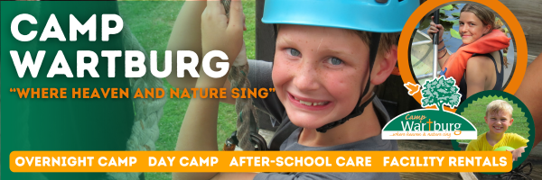 Camp Wartburg's mission is to provide Christ-centered outdoor ministries where children, adults and families can experience Christ in His Creation. We are a year-round camp facility that offers summer overnight camp, summer day camp, after-school care, outdoor education and retreats for any school, church or other organization.